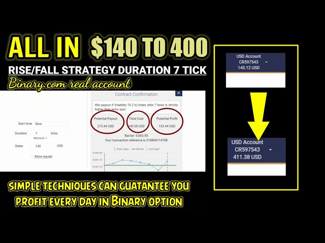 binary.com rise / fall strategy duration 7 tick - all in $ 140 to $ 400 - works 100%