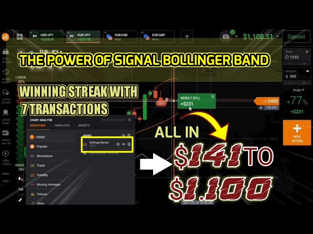THE POWER OF SIGNAL BOLLINGER BAND - all in from $ 141 to $ 1,100 - iq option strategy 2021