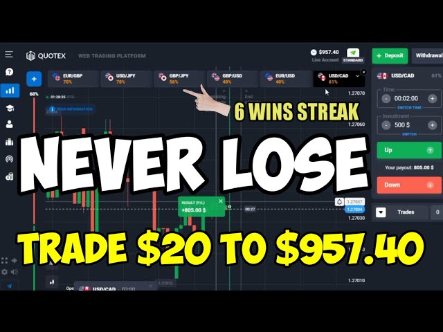 Never Lose - Trade $20 to $957.40 Wins Streak in Binary Options