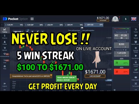 never lose - 5 wins streak - $100 to $1671.00 - big profit every day - pocket option strategy