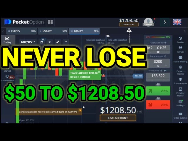 Never lose - $50 to $1208.50 This is real - Pocket Option Strategy