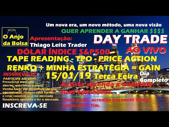 DAY TRADE AO VIVO DÓLAR E S&P500 15/01/19 TapeReading,TPO,Renko,Price Action DOLG19/WDOG19 Aprenda
