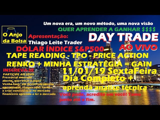 DAY TRADE AO VIVO DÓLAR E S&P500 11/01/19 Futuro TapeReading,TPO,Renko,Price Action DOLG19/WDOG19