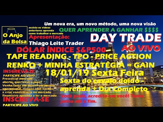 DAY TRADE AO VIVO DÓLAR E S&P500 18/01/19 TapeReading,TPO,Renko,Price Action DOLG19/WDOG19 Aprenda