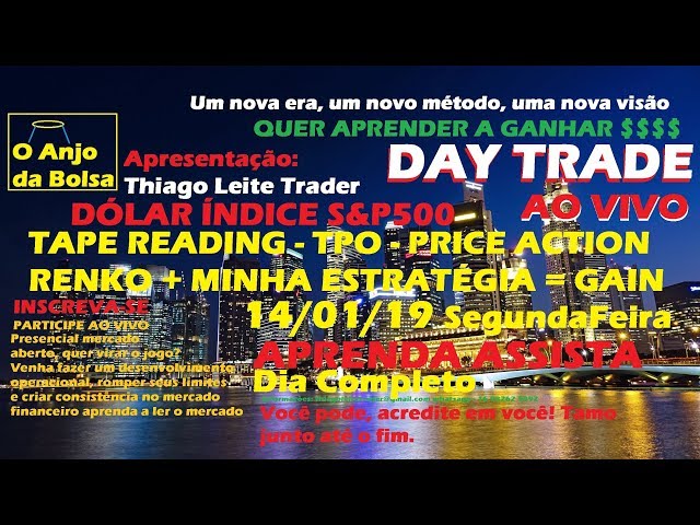 DAY TRADE AO VIVO DÓLAR E S&P500 14/01/19 Futuro TapeReading,TPO,Renko,Price Action DOLG19/WDOG19
