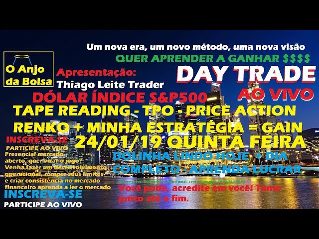 DAY TRADE AO VIVO DÓLAR ÍNDICE E S&P500 24/01/19 TapeReading,TPO,Renko,Price Action DOLG19/WDOG19