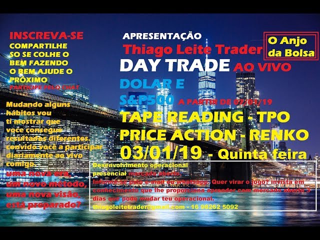 DAY TRADE AO VIVO DÓLAR E S&P500 17/01/19 TapeReading,TPO,Renko,Price Action DOLG19/WDOG19 Aprenda