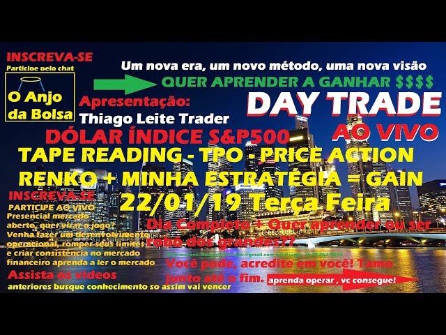 DAY TRADE AO VIVO DÓLAR INDICE E S&P500 22/01/19 TapeReading,TPO,Renko,Price Action DOLG19/WDOG19