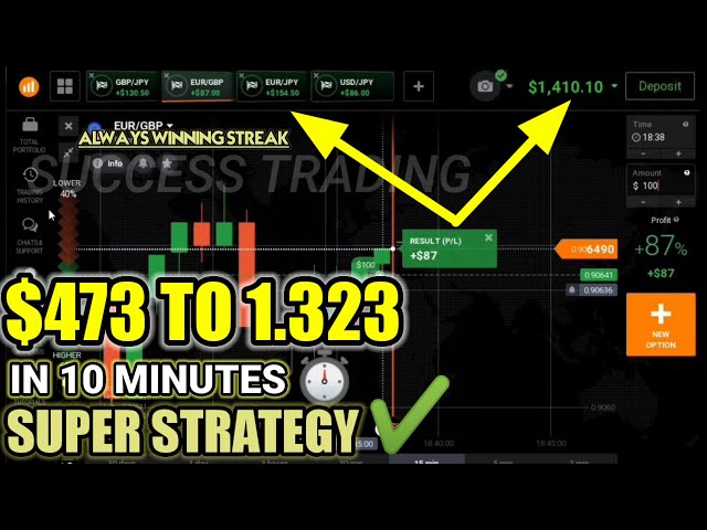 How to get winning streak - $473 To $1.323 in 10 minutes - iq options strategy