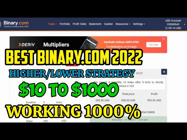 Best Binary.Com Higher/Lower Strategy - $10 to $1000 - working 1000% || 100% successfull