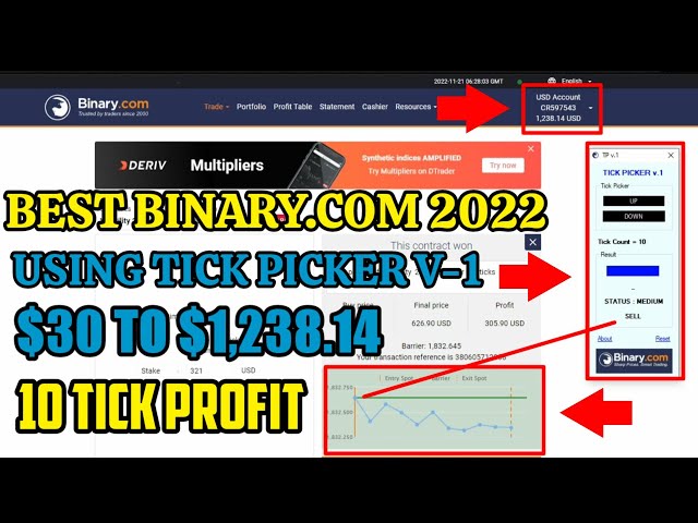Best Binary.Com Using Tick Picker v-1 2022 - $30 to $1,234.14 - 10 tick profit || 100% successfull
