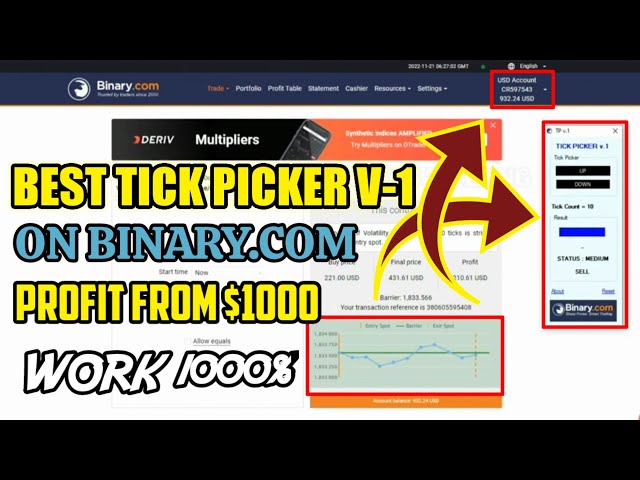 Best Tick Picker V-1 On Binary.Com - profit from $1000 - work 1000% || 100% successfull
